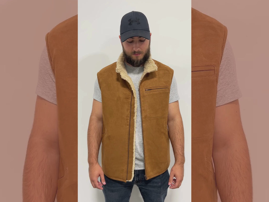 Shearling Sheepskin Mens Vest in Amber