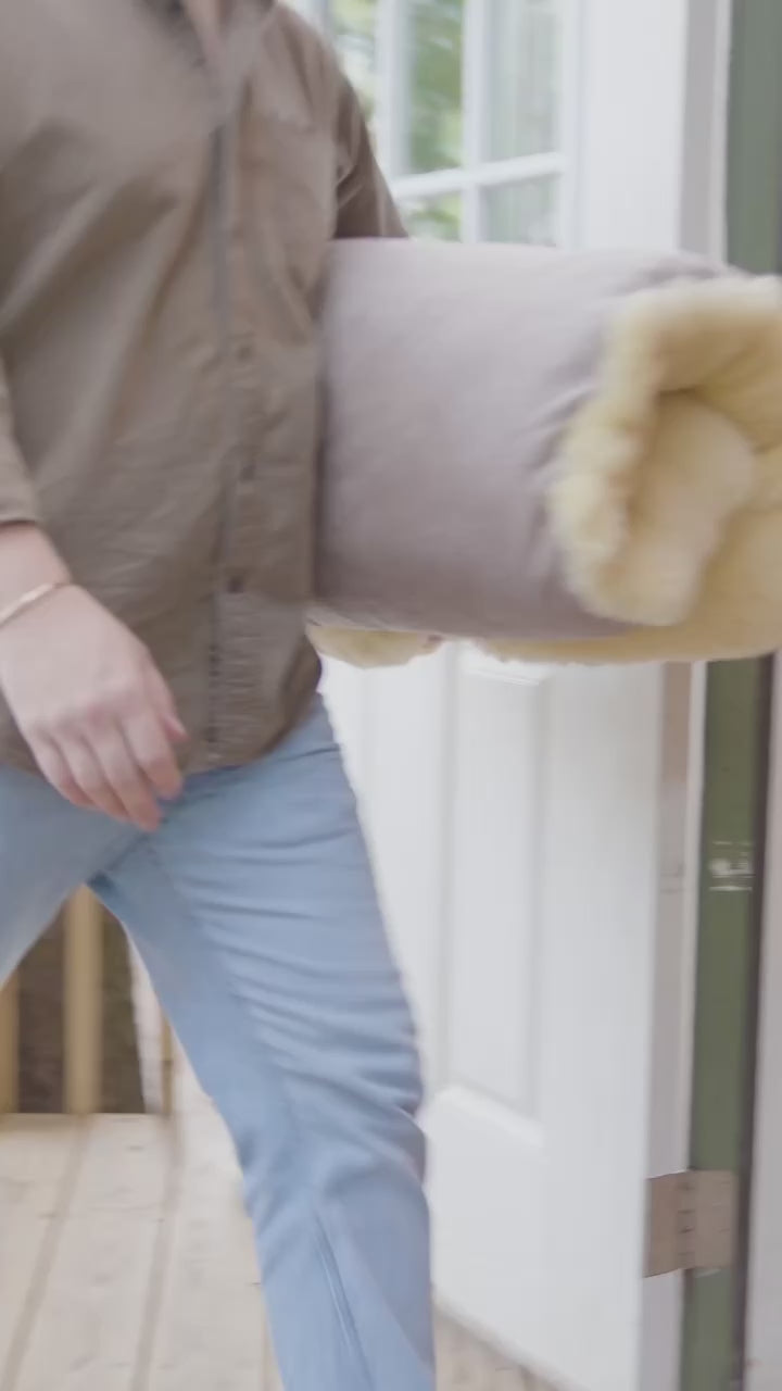 Our sheepskin is sourced from free-range sheep raised in the mountains of Europe by small, family-run farms. We work closely with skilled artisans who have spent generations preserving the ancient craft of working with sheepskin—an art passed down through families and honored through careful, hands-on making. Our hides remain naturally lanolin-rich, unlike many sheepskins on the market that are stripped during industrial tanning processes. This is the result of a traditional, gentle tanning method that protects the fiber’s natural structure and the restorative qualities that make sheepskin feel so uniquely calming.