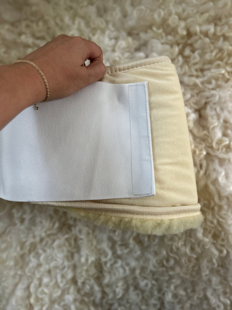 The waistband is made from 100% medical-grade sheepskin, with an elastic band easily attached by Velcro.
