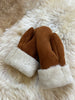 Made from 100% sheepskin. These mittens are lined with cozy and warm natural sheepskin to keep your hands at their ideal temperature. NO synthetic materials are used, making these the ideal gloves to slip-on whenever you need to keep your hands protected from the cold.