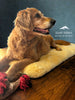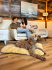 An orthopedic sheepskin dog bed, stuffed with a 100% natural wool removable pillow insert, making this bed fully washable. Designed with a soft yet durable microsuede bottom for added stability and comfort on any surface. Perfect for senior pups or larger dogs who need the healing touch of medical-grade sheepskin and wool.