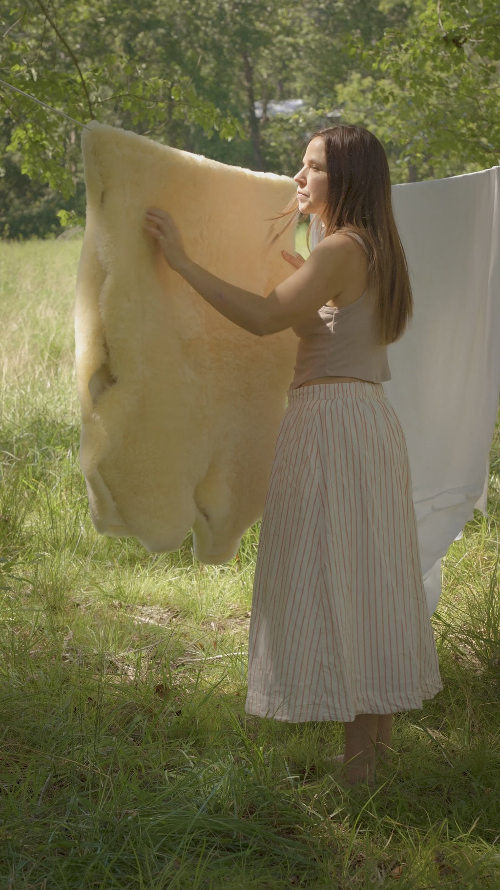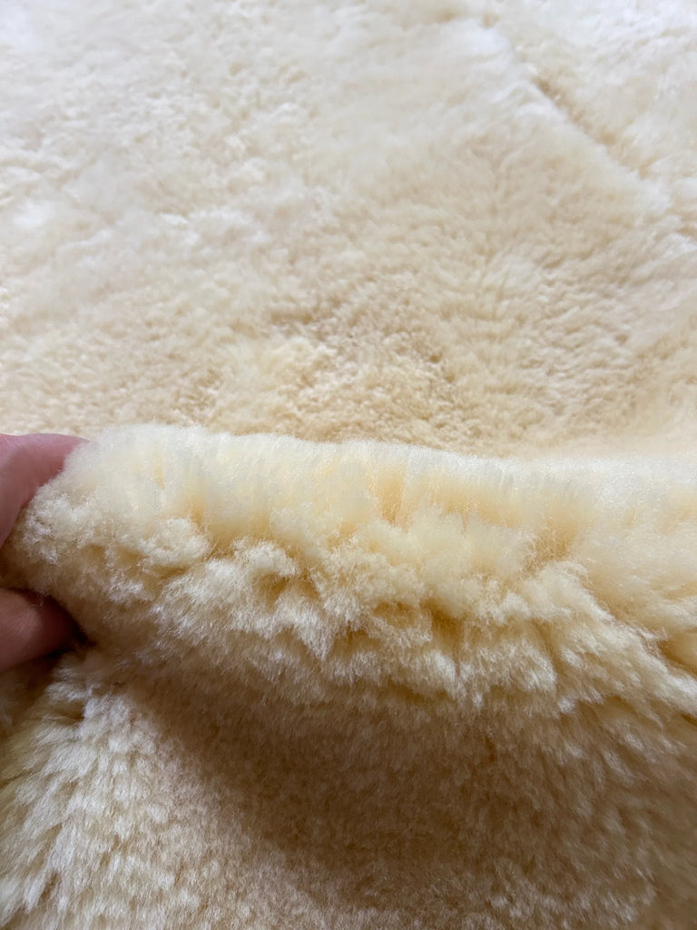 A truly rare quad rug, made from our gorgeous thick shorn golden ivory medical sheepskin hides. Because the fur is shorter on this quad sheepskin rug, it makes for an amazing sleeping mat, exercise pad, bench throw, cover for your couch, or fireside throw.