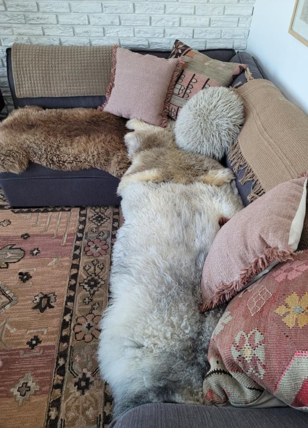 Ethically made and sourced, organic, genuine sheepskin rugs. Tanned naturally without using harsh chemicals and heavy metals like arsenic and formaldehyde. Each sheepskin rug is one-of-a-kind, never identical, never dyed, and cuddly soft.