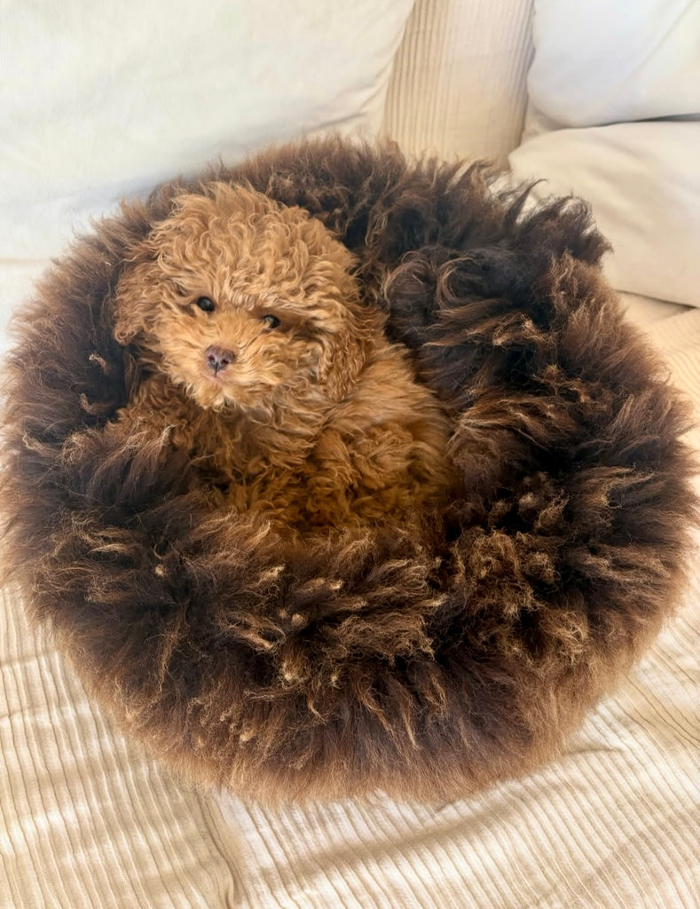 This bed is made from and consist only of 100% natural sheepskin, not dyed or stuffed with any other material.