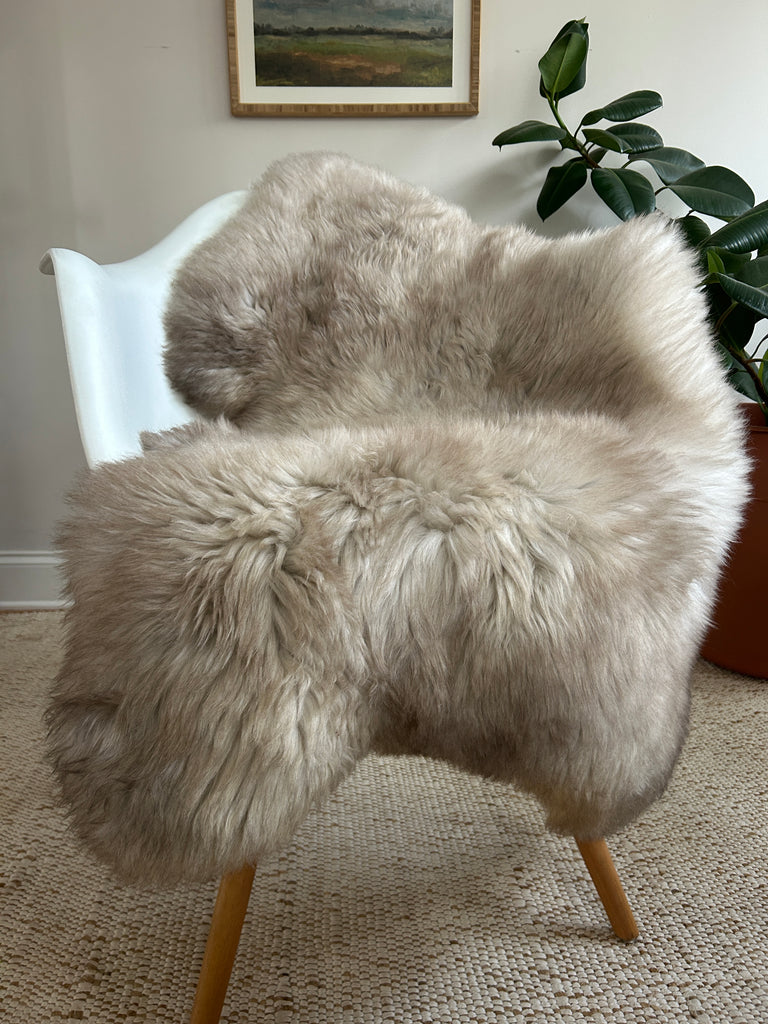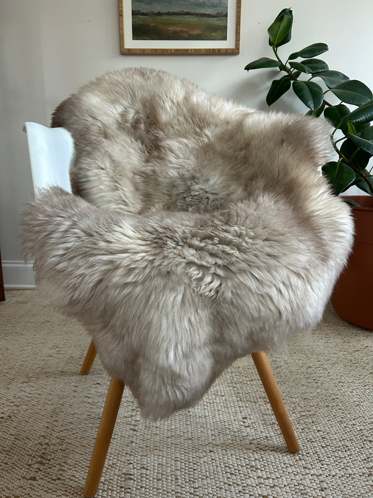 Our sheepskin is sourced from free-range sheep raised in the mountains of Europe by small, family-run farms. We work closely with skilled artisans who have spent generations preserving the ancient craft of working with sheepskin—an art passed down through families and honored through careful, hands-on making. Our hides remain naturally lanolin-rich, unlike many sheepskins on the market that are stripped during industrial tanning processes. This is the result of a traditional, gentle tanning method that protects the fiber’s natural structure and the restorative qualities that make sheepskin feel so uniquely calming.