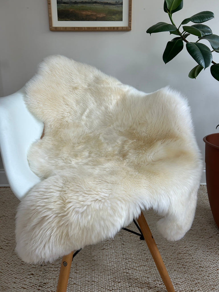 Our sheepskin is sourced from free-range sheep raised in the mountains of Europe by small, family-run farms. We work closely with skilled artisans who have spent generations preserving the ancient craft of working with sheepskin—an art passed down through families and honored through careful, hands-on making. Our hides remain naturally lanolin-rich, unlike many sheepskins on the market that are stripped during industrial tanning processes. This is the result of a traditional, gentle tanning method that protects the fiber’s natural structure and the restorative qualities that make sheepskin feel so uniquely calming.