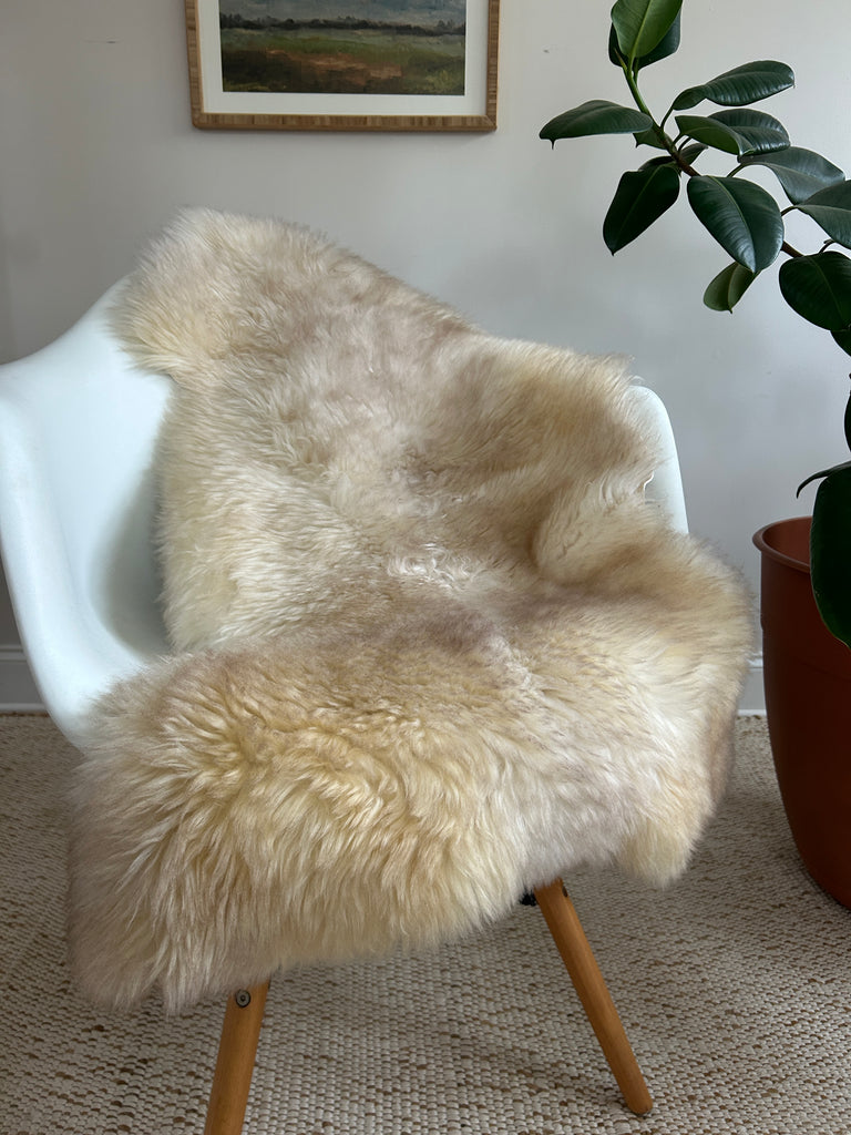 Our sheepskin is sourced from free-range sheep raised in the mountains of Europe by small, family-run farms. We work closely with skilled artisans who have spent generations preserving the ancient craft of working with sheepskin—an art passed down through families and honored through careful, hands-on making. Our hides remain naturally lanolin-rich, unlike many sheepskins on the market that are stripped during industrial tanning processes. This is the result of a traditional, gentle tanning method that protects the fiber’s natural structure and the restorative qualities that make sheepskin feel so uniquely calming.