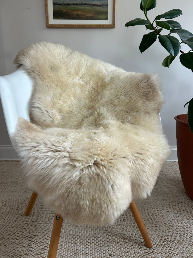 Our sheepskin is sourced from free-range sheep raised in the mountains of Europe by small, family-run farms. We work closely with skilled artisans who have spent generations preserving the ancient craft of working with sheepskin—an art passed down through families and honored through careful, hands-on making. Our hides remain naturally lanolin-rich, unlike many sheepskins on the market that are stripped during industrial tanning processes. This is the result of a traditional, gentle tanning method that protects the fiber’s natural structure and the restorative qualities that make sheepskin feel so uniquely calming.